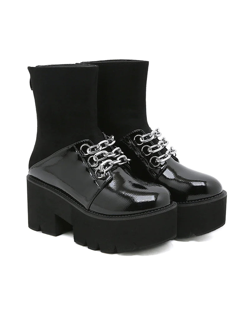 ZIPPER THICK-SOLED SPLICED METAL VELVET BOOTIES