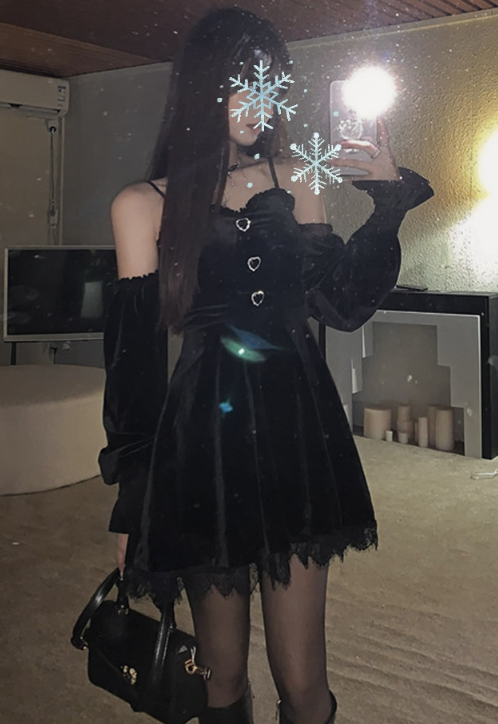 Off Shoulders High Waist Lace Patchwork Gothic Dress