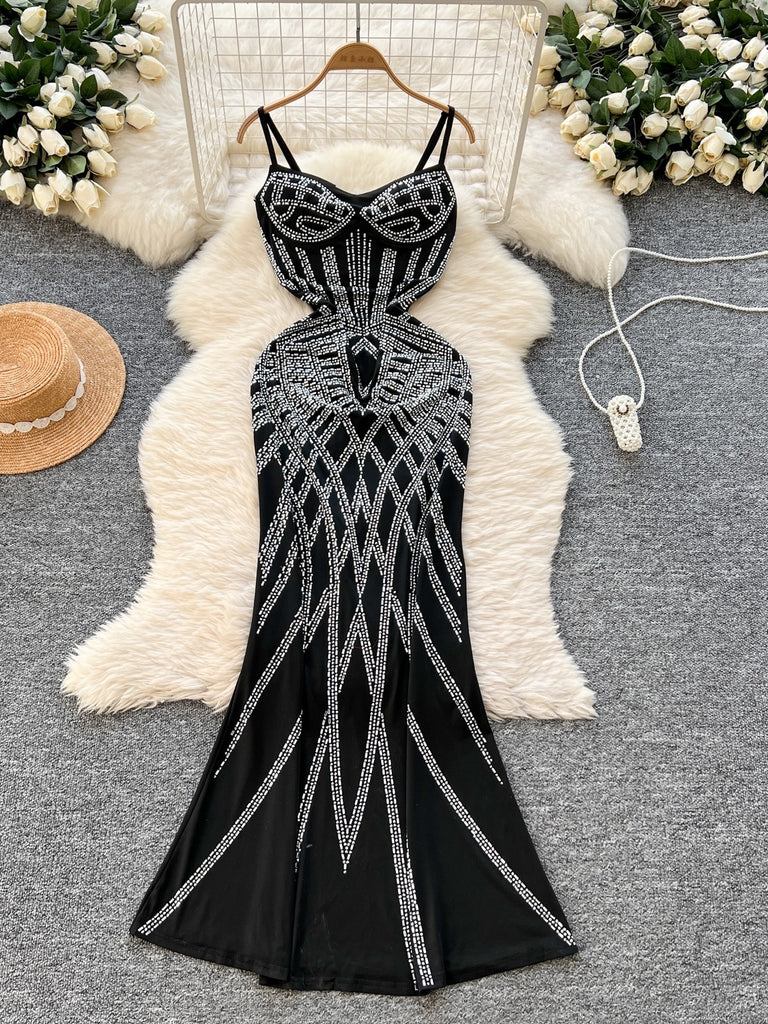 Black Sparkle Slimming Sling Hip Dress