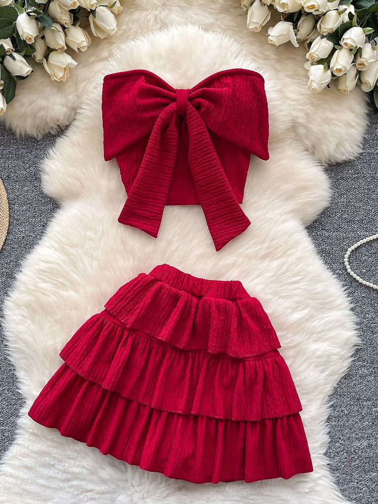 Crop Top Oversized Bow Tiered Ruffled Skirt