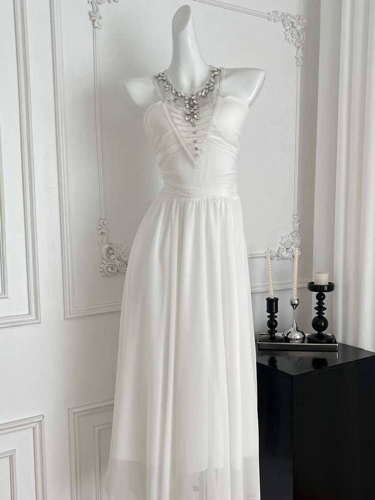 Crystal Embellishments White Sleeveless Maxi Dress