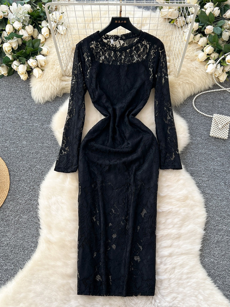 Elegance Black Long Sleeve Lace Dress