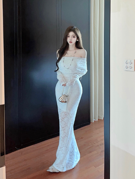 Graceful Off - Shoulder Ivory Lace Mermaid Maxi Dress