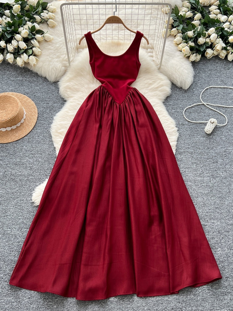 Simple Sleeveless Flowing Skirt Red PartyDress