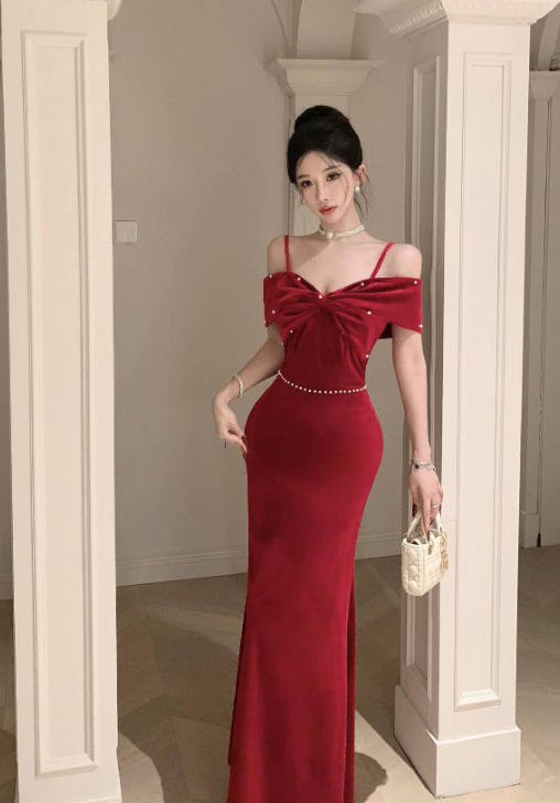 Stylish Strappy Red Mermaid Dress with Bow Detail