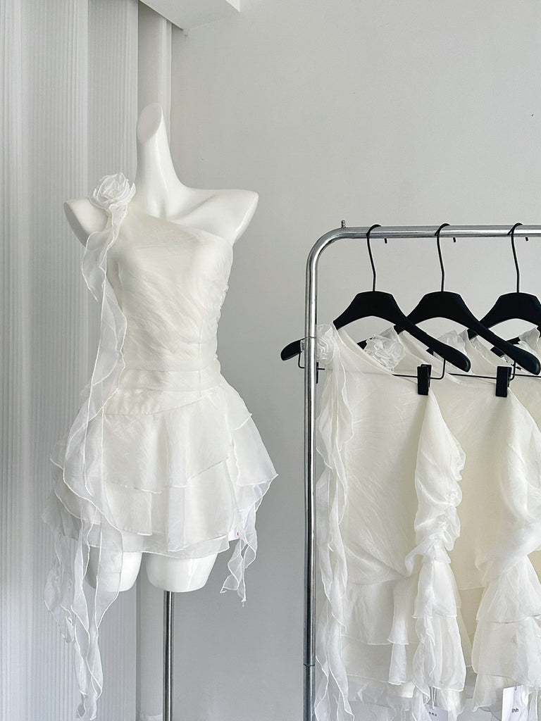 Layered Hem Floral One-Shoulder Chiffon Dress