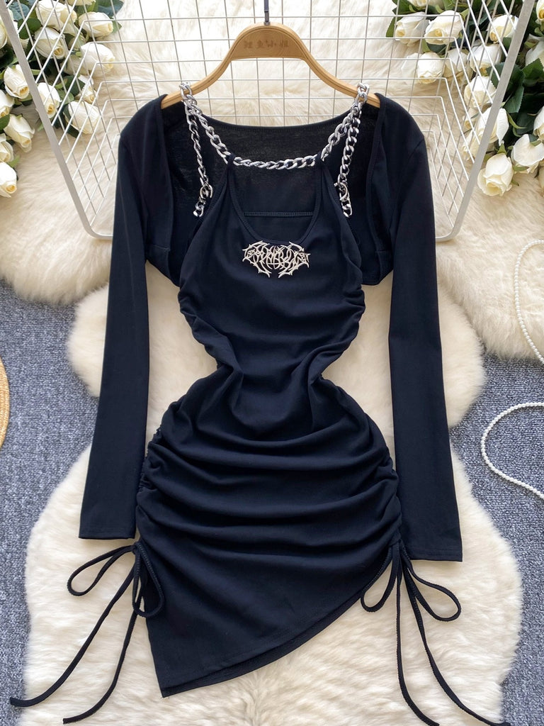 Embellished Adjustable Skirt Black Dres