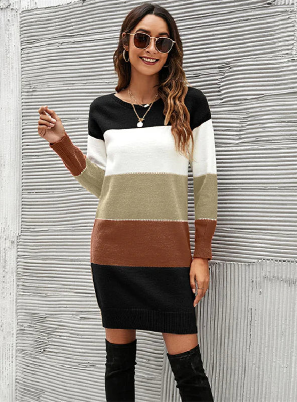 COLOR MATCHING LONG SWEATER DRESS