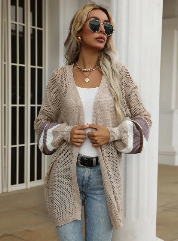 KNITTED HOLLOW CARDIGAN THIN SLEEVE COAT