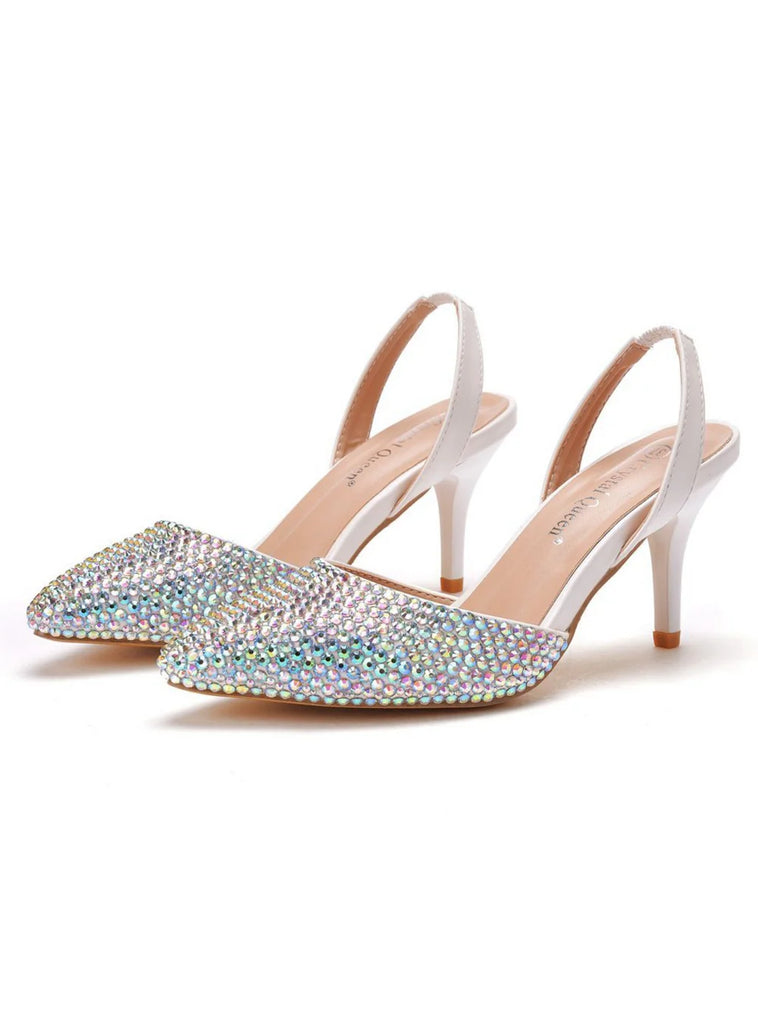 7 CM SHALLOW-POINTED COLORED DIAMOND STILETTO SANDALS