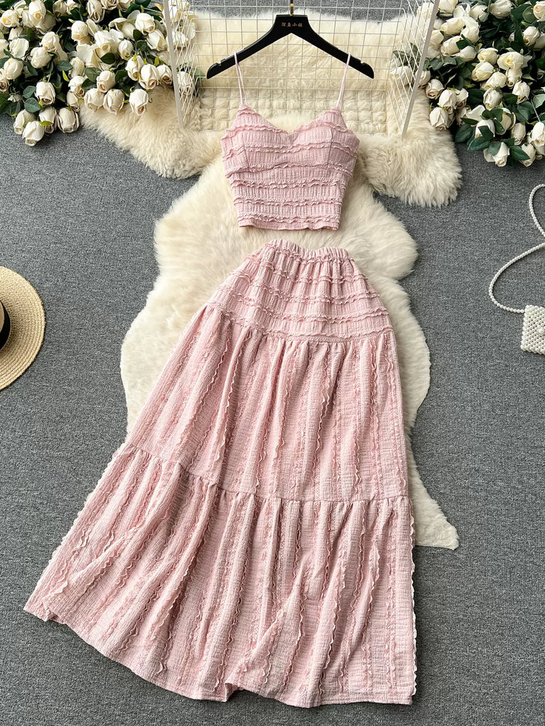 Pastel Pink Pleated Two-Piece Maxi Dress