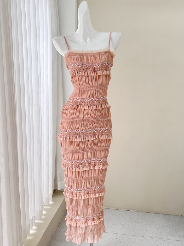 As you slip into this beautifully crafted pink dress, the world seems to pause to appreciate its elegance. Each layer is thoughtfully added to enhance the visual appeal, with sequin accents that catch the light beautifully. The elastic smocking on the back ensures a perfect fit, making it suitable for both slim and curvaceous figures. This dress not only flatters the wearer but also offers the comfort of breathable fabric, making it ideal for long evenings of dancing or dining. Whether attending a wedding or a sophisticated garden party, this ensemble guarantees you'll look stunningly put-together.