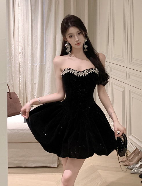 Elegant Sparkly Black Velvet Dress for Party Occasions