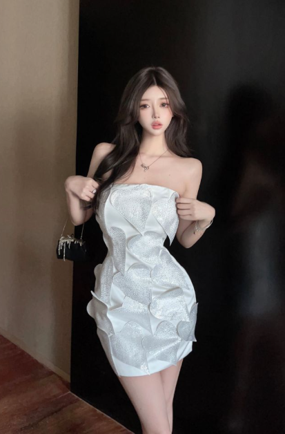 Elegant Strapless Mini Dress with 3D Petal - like Embellishments