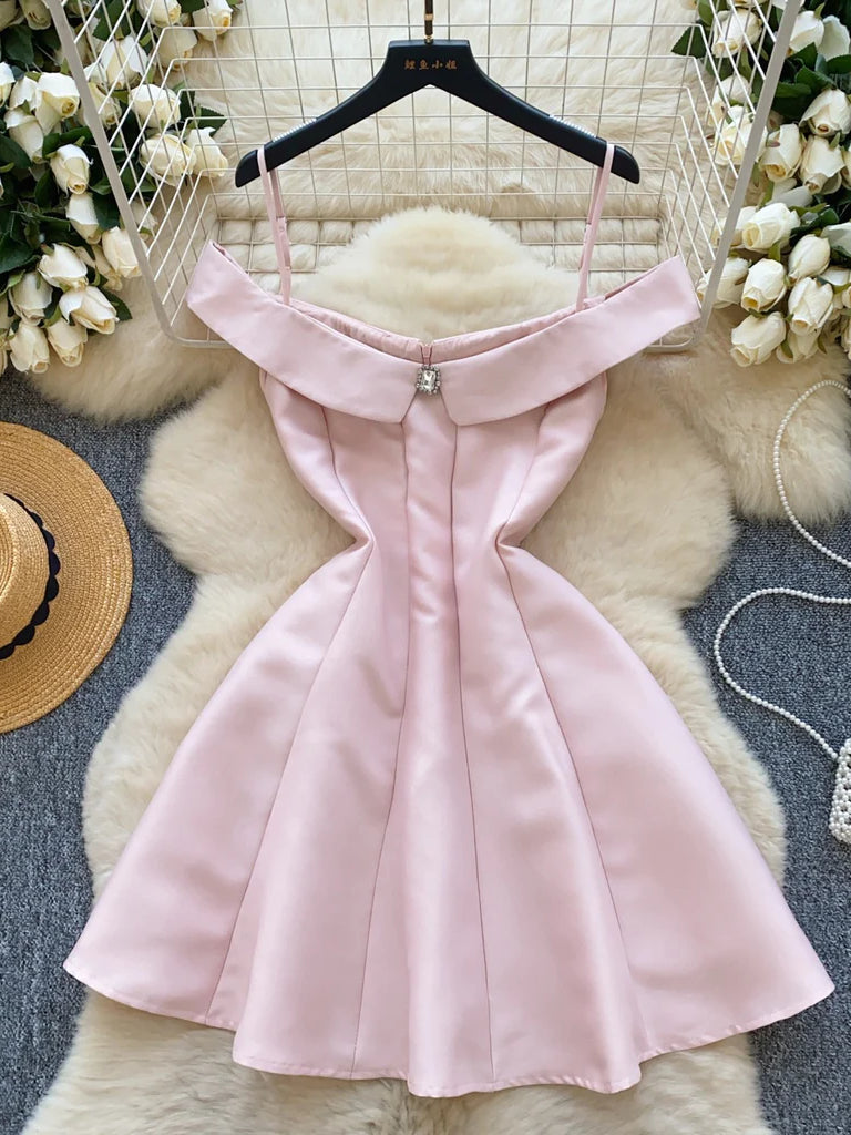 Pink Short Satin Off The Shoulder Cocktail Dress