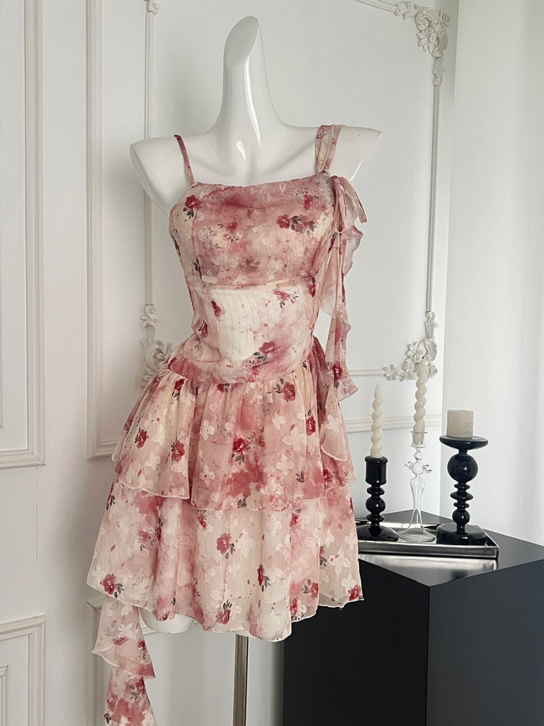 Wild Rose Holiday Fairy Irregular Red Floral Dress