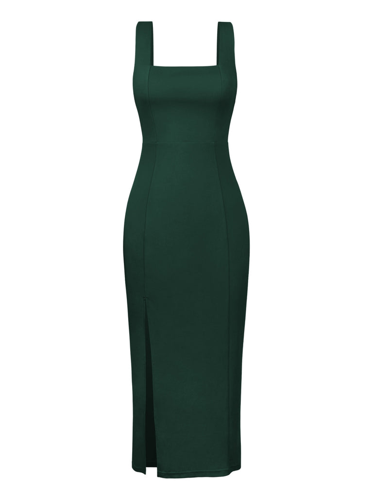 Crave the spotlight? This emerald-hued beauty is your ticket to becoming the evening's focal point! The dress features a structured square neckline, creating a frame for the décolletage, while the snug fit highlights your curves with taste and elegance. The fabric, rich and sumptuous, contours your form, ensuring every turn is a graceful one. It's the perfect choice for an upscale dinner or a high-stakes business event, where making an impression is key.