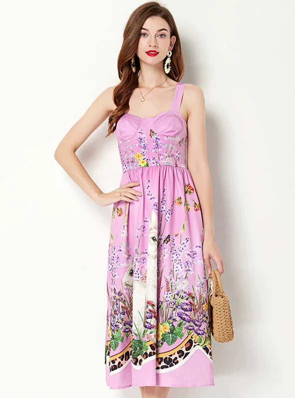 PRINTED SLEEVELESS VIOLET DRESS