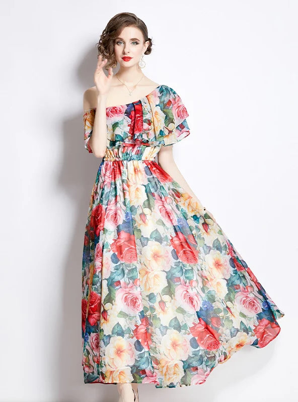 CHIFFON ONE SHOULDER BEACH SEASIDE DRESS