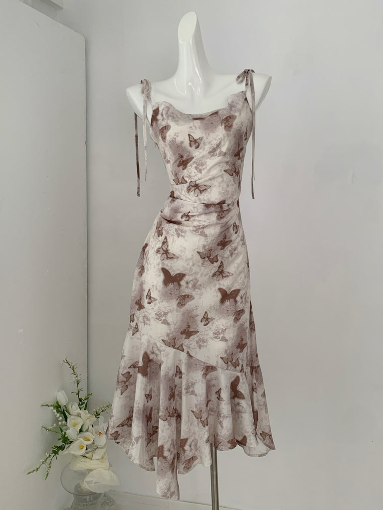 Summer Swing Irregular Butterfly Print Holiday Fishtail Skirt