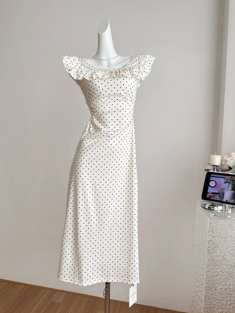 Daringly designed for the modern woman, this polka-dot midi dress balances classic charm with contemporary elegance. The ruffled neckline adds a touch of sweetness, while the figure-flattering fit highlights your waist and enhances your natural curves. The midi length offers a sophisticated appeal, making this dress ideal for more formal occasions such as summer weddings or cocktail parties. The classic black and white polka-dot pattern keeps it playful yet chic, allowing you to experiment with accessories to make the look your own. Its breathable fabric makes it comfortable enough to wear all day, while the carefully tailored fit ensures that you look polished and put-together. Elevate the look with strappy sandals and a statement necklace, and prepare to receive compliments wherever you go in this beautiful piece.