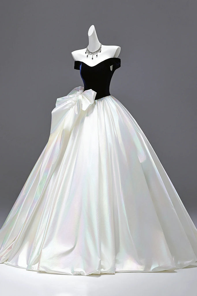 Navy Velvet & White Satin A Line Prom Dress