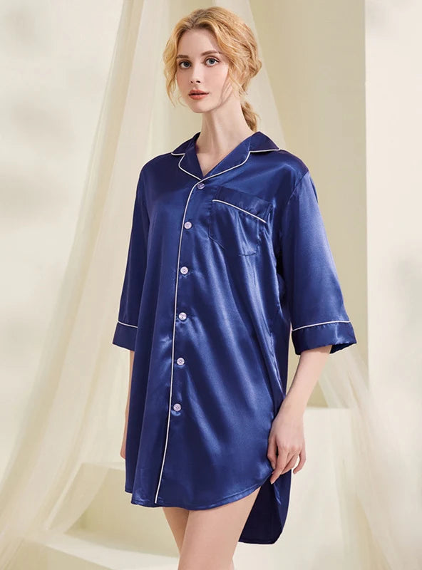 LOOSE SILK PAJAMAS V-NECK NIGHTGOWN