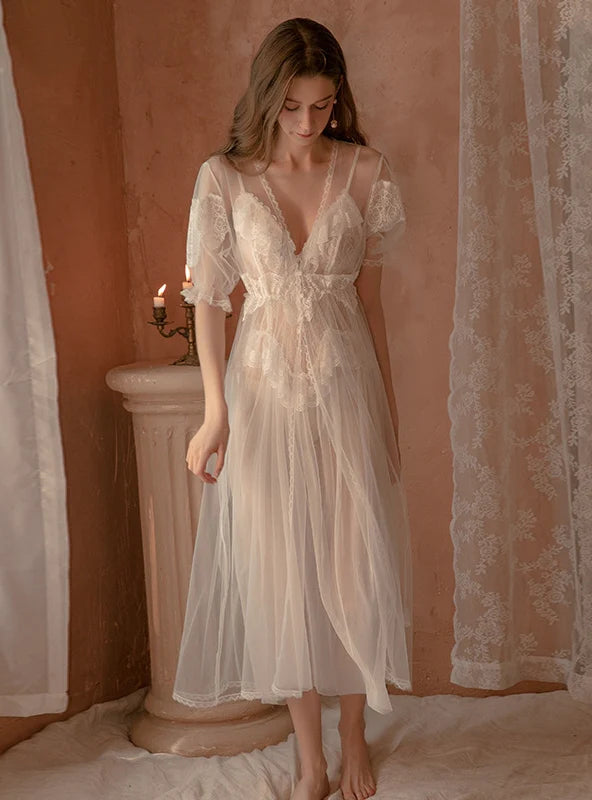 SEXY MESH PAJAMAS PERSPECTIVE NIGHTDRESS SET
