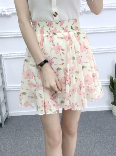 fashion spring and summer Korean chiffon small fresh skirt short skirt floral skirt