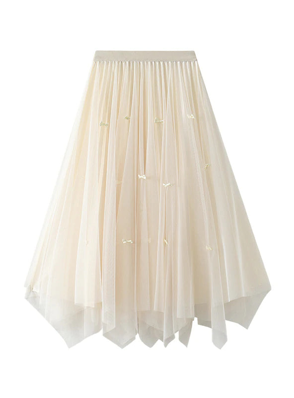 HIGH WAIST PLEATED IRREGULAR GAUZE SKIRT