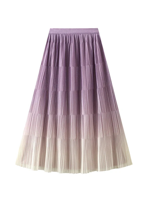 Gradient Pleated Slim Mid-length Skirt