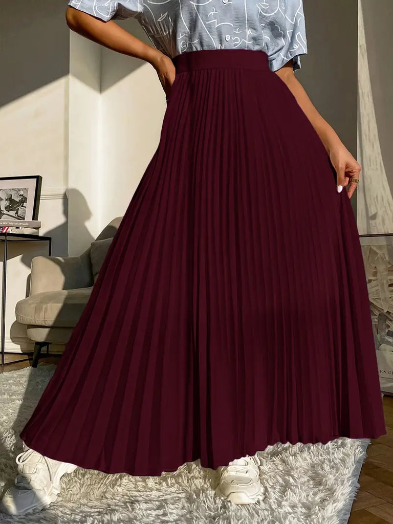 Midi Burgundy Chiffon Pleated Maxi Skirts