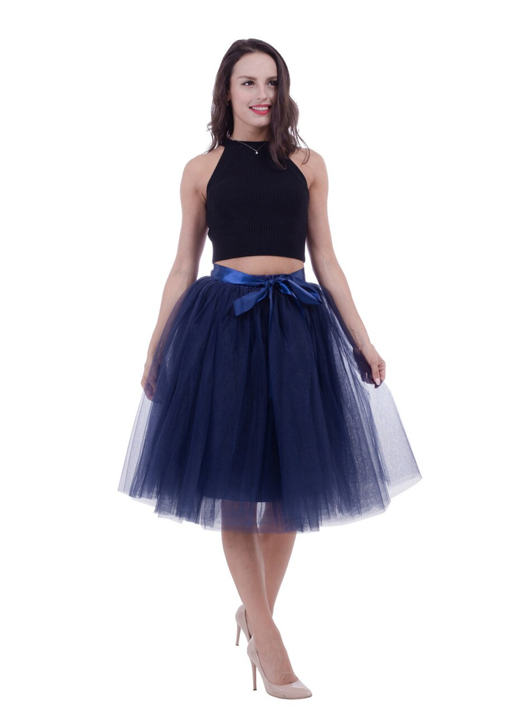 Navy Blue Gauze Belt Puff Tulle Skirt