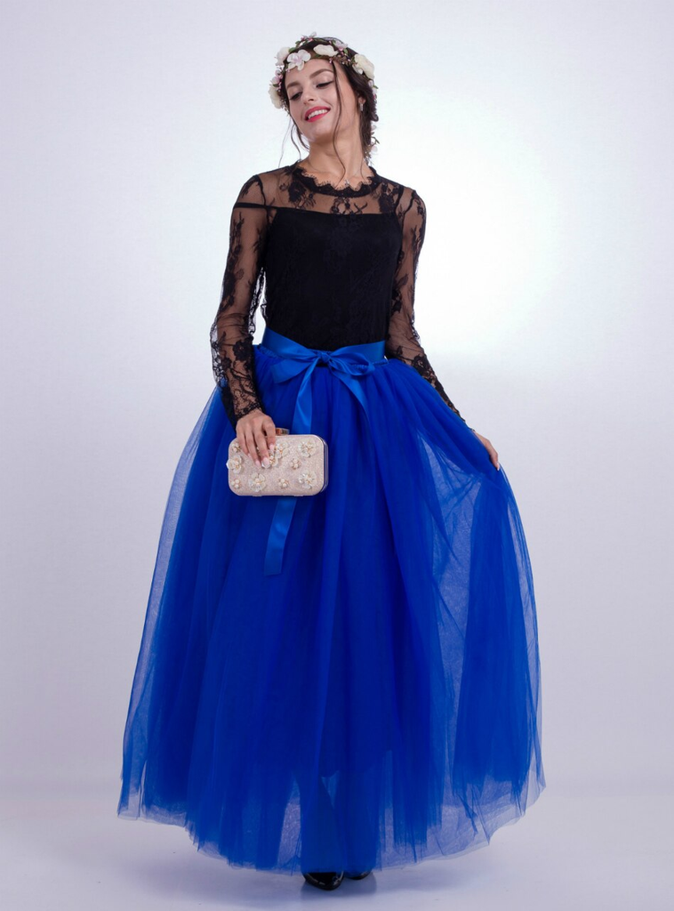 Royal Blue Gauze Mop Floor Long Skirt