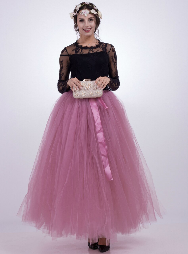 Rubber Pink Tulle Long Tutu Skirt