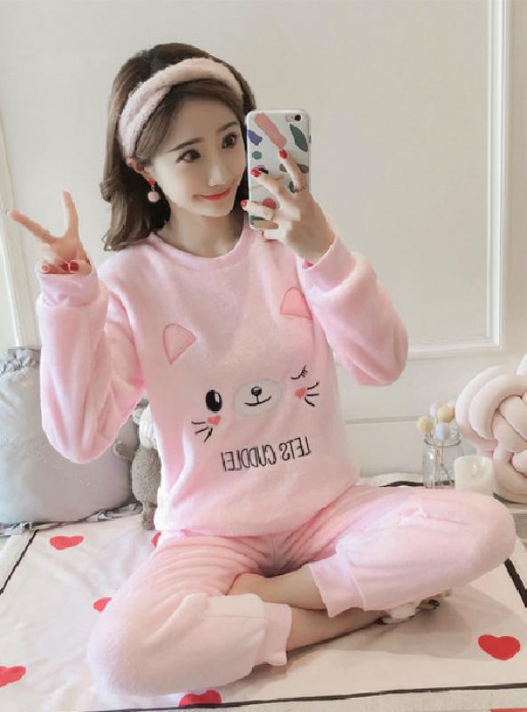 WOMEN CAT VELVET LONG SLEEVE PYJAMAS SETS