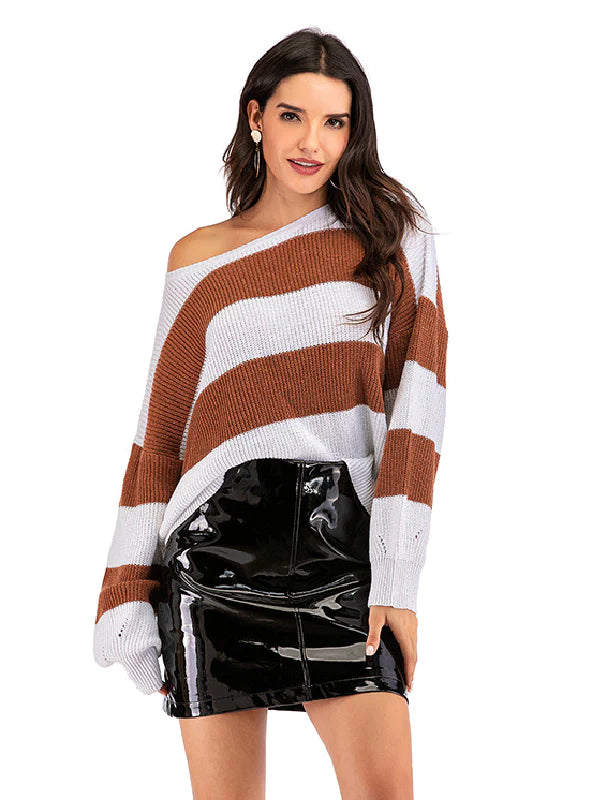 LOOSE ROUND NECK PULLOVER STRIPED CONTRAST SWEATER