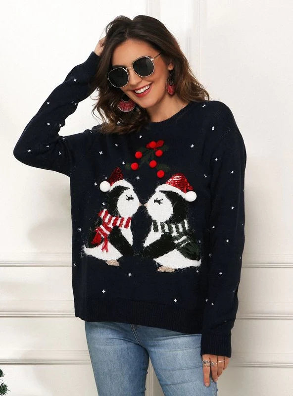 CLASSY JACQUARD LOOSE LONG SLEEVE CHRISTMAS SWEATER