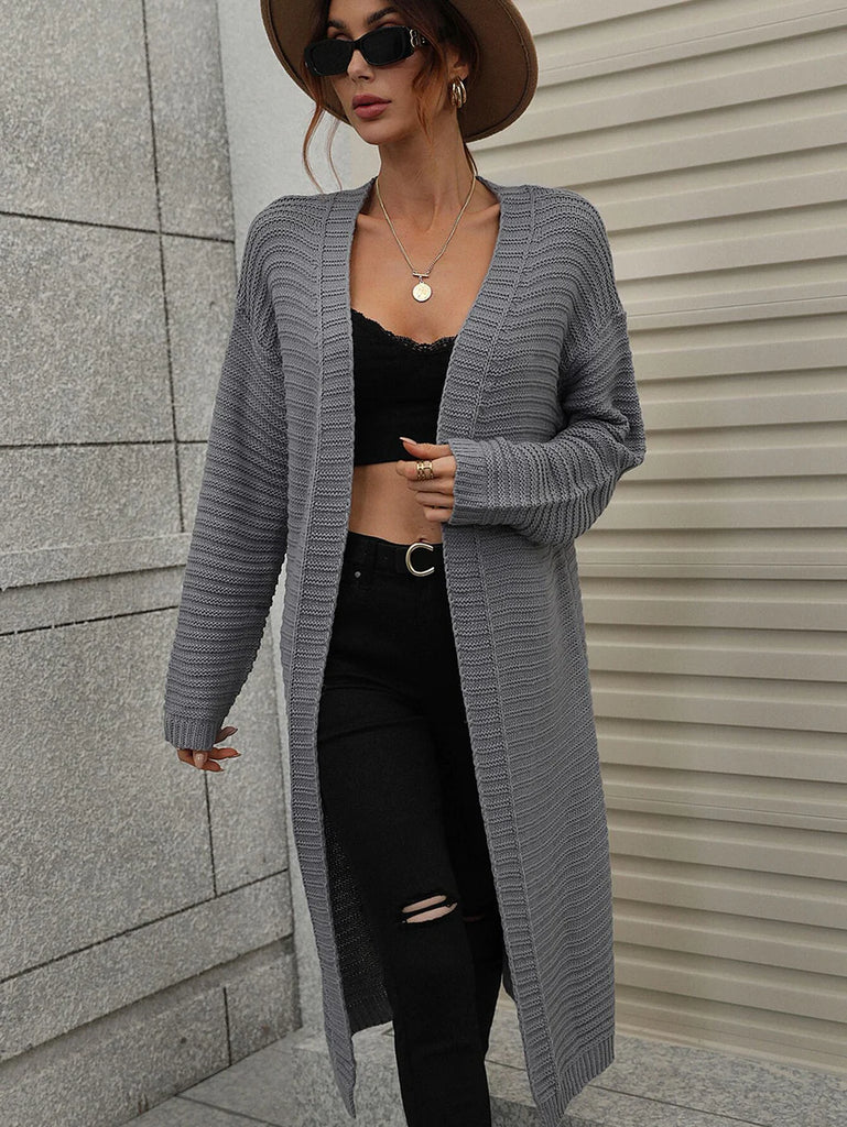 FASHION LONG CARDIGAN SOLID COLOR KNITTED SWEATER
