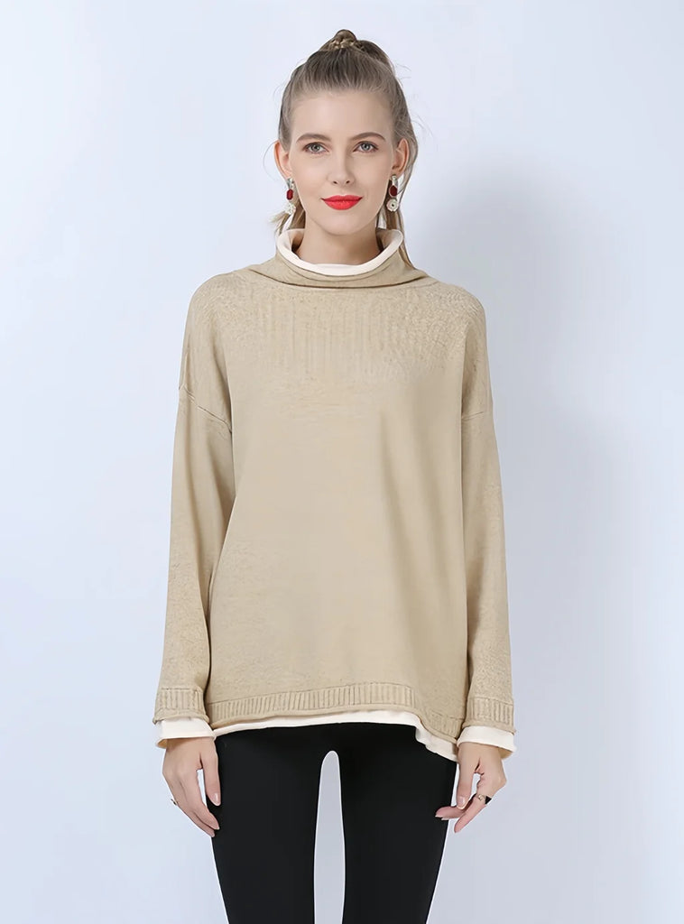 FASHION PILE NECK ELASTIC KNITTED LOOSE PULLOVER SHIRT