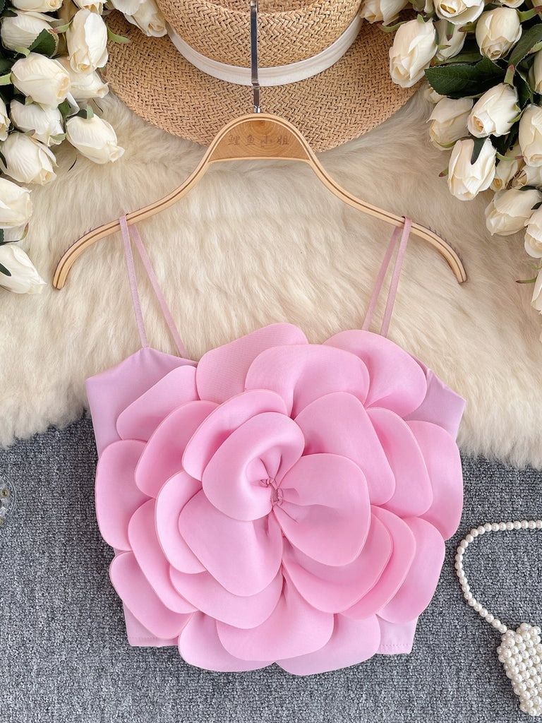 Blossoming Rose Pink Petal Appliqué Crop Top