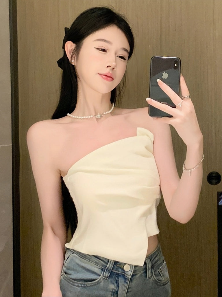 Highlighting the essence of chic simplicity, this cream asymmetrical top offers a sleek, fashionable choice for various occasions. The clean lines and the elegant flow of the fabric make it a perfect pick for fashion-forward individuals who prefer a touch of class. Its neutral color palette allows for versatility in styling, enabling you to pair it with bold patterns or keep it understated with classic denim. The top is designed to accentuate the neckline and shoulders, making it an excellent canvas for statement jewelry. Whether it’s a day at the office or a night out