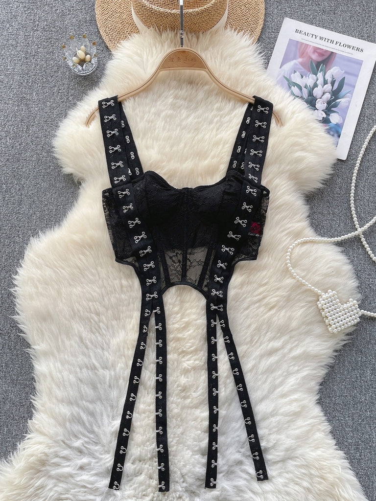 Eye-Catching Hook Edgy Black Lace Corset Top