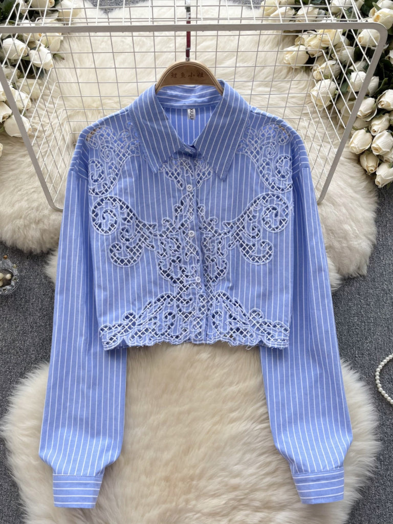Periwinkle Pinstripe Embroidered Statement Blouse