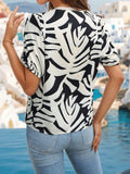 SHORT SLEEVE PULLOVER V-NECK PRINTED SHIRT